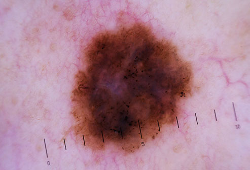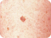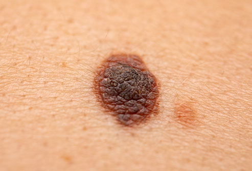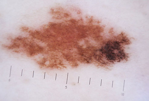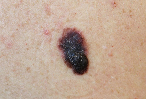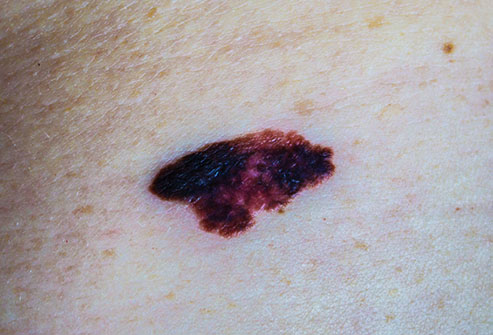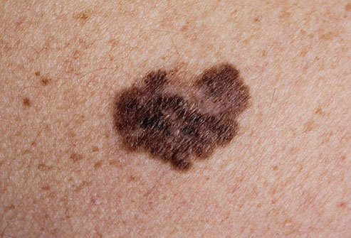Appears as a new spot or an existing spot that changes in colour, size or shape. Can appear on skin not normally exposed to the sun.