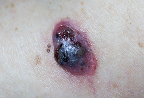 Most dangerous form of melanoma. If left untreated can spread to other parts of the body. Grows quickly. Looks different from common melanomas. Raised and even in colour. Many are red or pink and some are brown or black. They are firm to touch and dome-shaped.